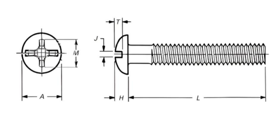 Стандартны памер: усе шрубы адпавядаюць стандарту ASME B 18.6.3 (T35-T36) - 2013