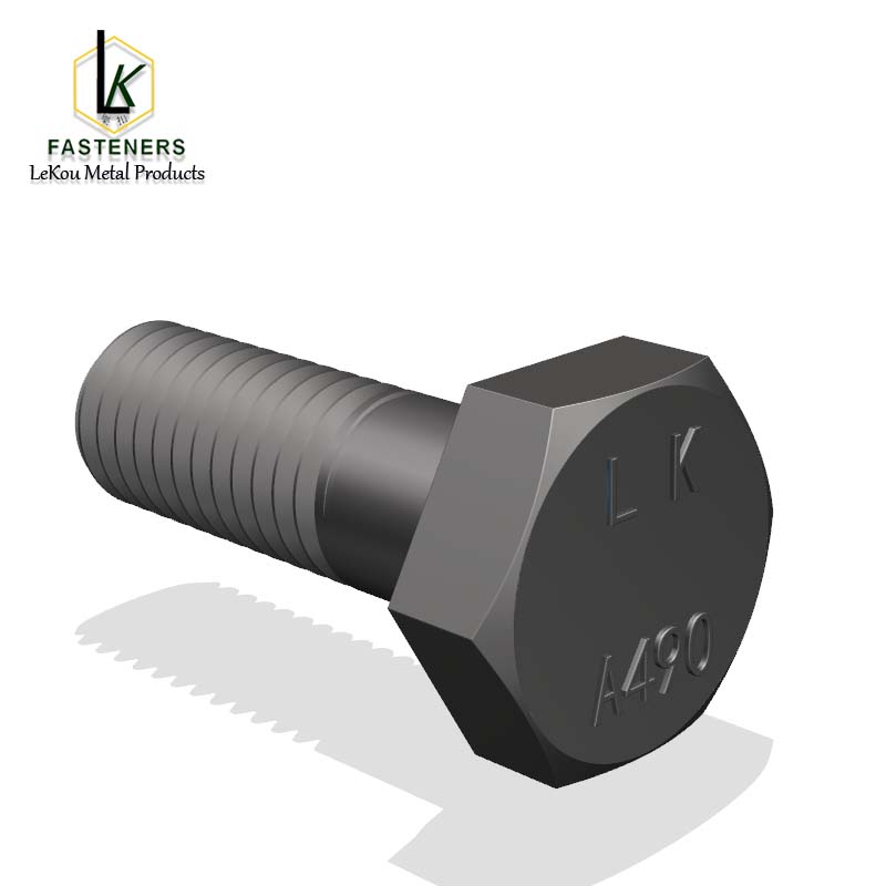 Моцны ніт з шасціграннай галоўкай ASTM A490 выраблены з матэрыялу з высокатрывалай легаванай сталі і праходзіць спецыяльны працэс тэрмічнай апрацоўкі загартоўкі і водпуску для паляпшэння яго механічных уласцівасцей. Гэты тып нітаў можа вытрымліваць вялікія нагрузкі і трываласць на разрыў, забяспечваючы бяспеку і ўстойлівасць канструкцыі. Ён мае больш моцную трываласць на разрыў, чым балты A325 пры выкарыстанні ў злучэннях. Яго цвёрдасць, трываласць на разрыў, цякучасць і іншыя ўласцівасці вышэй, чым у нітаў A325. Гэты тып нітаў выкарыстоўваецца не толькі для мацавання асноўнай канструкцыі, але таксама часта выкарыстоўваецца для злучэння важных апорных кропак або нясучых частак.