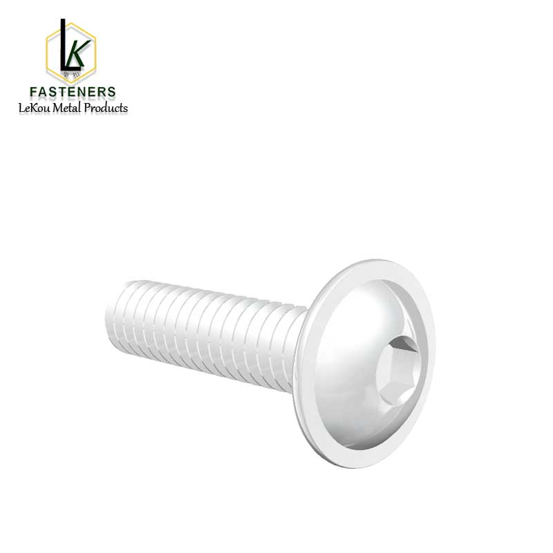 Шруба з шасціграннай плоскай круглай галоўкай (Huasi) з паверхняй фланца на галоўцы для павышэння эфектыўнасці супраць расхіствання. Фланец распаўсюджвае ціск, памяншаючы пашкоджанні тонкіх і мяккіх матэрыялаў. Кнопкавая галоўка выглядае падобна на панарамную галоўку, але яна ніжэйшая і больш кампактная, займаючы менш месца. Маючы шэсць кропак кантакту, шасцігранны прывад вытрымлівае большы крутоўны момант, чым шчылінны і крыжовы, каб надзейна захапіць ваш драйвер, У той жа час шасцігранная адтуліна таксама павялічвае крутоўны момант падчас руху. Даўжыня шрубы вымяраецца знізу фланца.