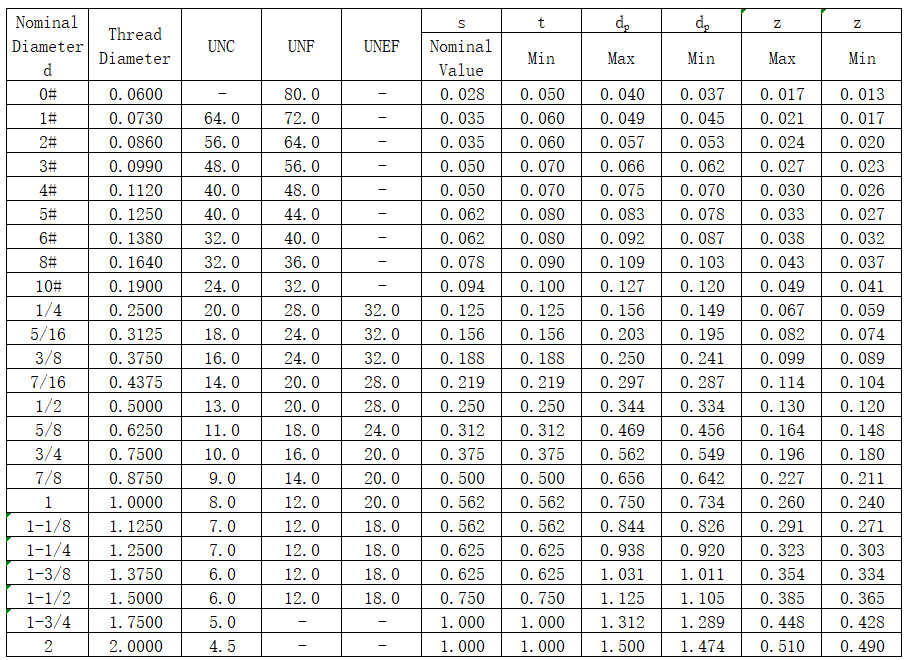 Lock Metal Products прапануе крок разьбы UNC і UNF. Даступныя дыяметры разьбы ў дыяпазоне ад 0#-4#, 5#, 6#, 8#, 10#-24UNC, 12#-24UNC, 1/4-20UNC, 5/16-18UNC, 3/8-16UNC, 1/2-13UNC-2 цалі. Даўжыня можа дасягаць 10 цаляў. Ніткі, як правіла, суцэльныя або паўніткі, у залежнасці ад выбару кліента.。
