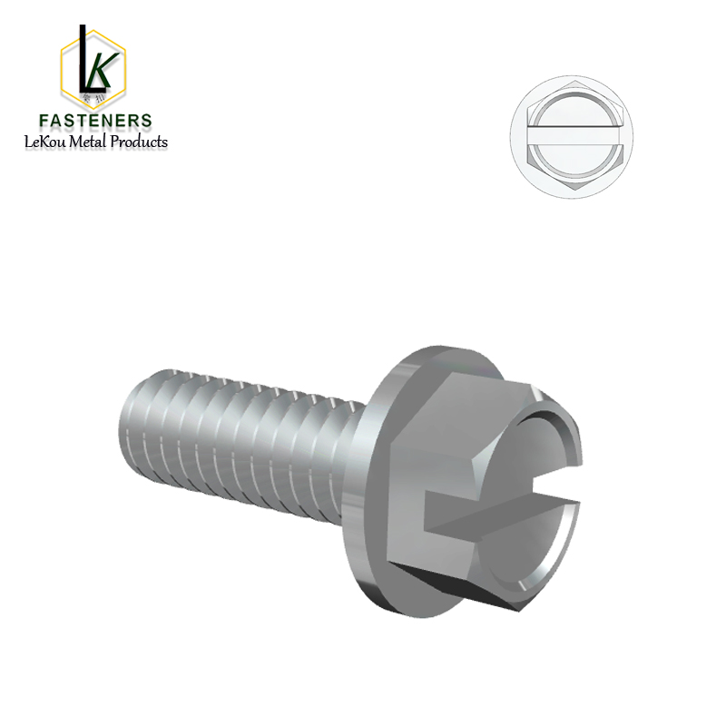 У той час як машынныя шрубы з шасціграннай галоўкай і прарэзам з нержавеючай сталі маюць шмат падабенства з фланцавымі нітамі з шасціграннай галоўкай з нержавеючай сталі, існуюць істотныя адрозненні ў іх метадах злучэння, намінальных нагрузках і прыдатных сцэнарыях. Шрубы з прарэзам непасрэдна ўкручваюцца ў папярэдне прасвідраваныя адтуліны з унутранай разьбой (напрыклад, у адтуліны з разьбой у лістах з нержавеючай сталі або ў адтуліны з разьбой у адліўках), ухіляючы неабходнасць выкарыстання гайкі. Шліцавая канструкцыя сумяшчальная са стандартнымі плоскімі адвёрткамі. Нягледзячы на тое, што здольнасць перадачы крутоўнага моманту ў іх абмежаваная, высілак зацяжкі можна кантраляваць, і яны могуць выкарыстоўвацца ў абмежаваных памяшканнях, дзе балты з шасціграннай галоўкай фланца не падыходзяць. Паверхні фланца таксама могуць быць зубчастымі або гладкімі. Зубчастыя паверхні фланца пасля зацягвання ўстаўляюць зубцы ў паверхню злучаных дэталяў (або пракладак), ствараючы механічнае зачапленне, якое прадухіляе расхістванне, выкліканае вібрацыяй, што прыводзіць да значнага эфекту супраць расхіствання. Паверхні фланца без зубцоў у першую чаргу павялічваюць плошчу апоры і размяркоўваюць ціск зацяжкі, замяняючы плоскія шайбы і прадухіляючы драпіны на паверхні злучаных частак; у іх адсутнічаюць актыўныя магчымасці супраць расхіствання.