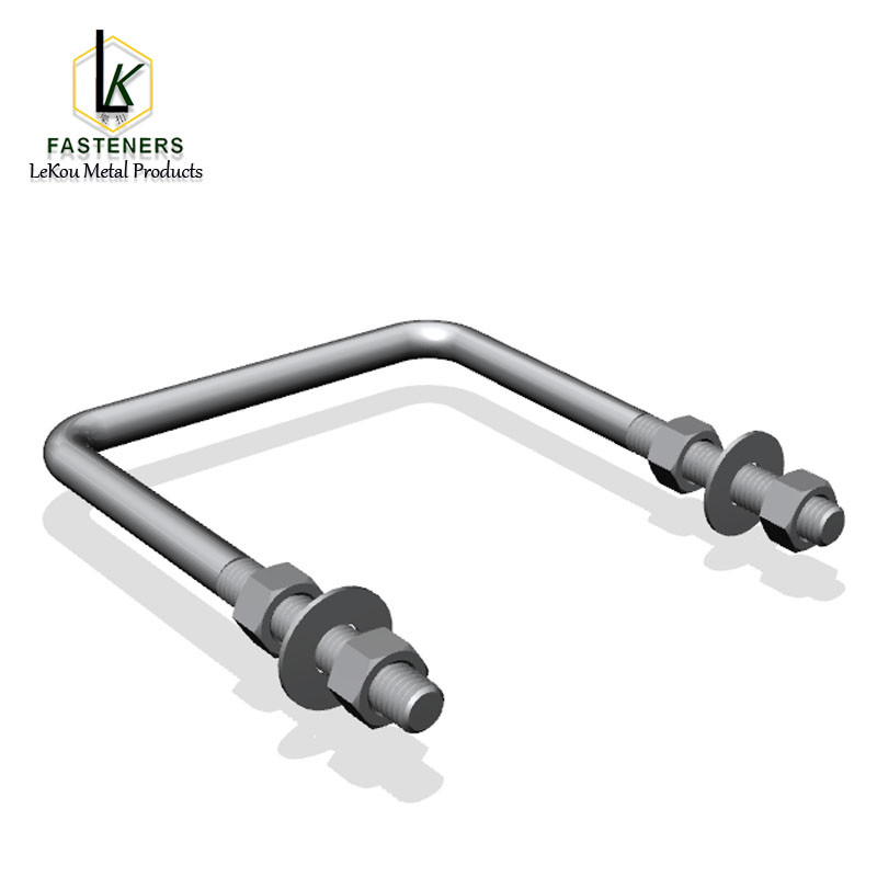 U-вобразная частка ніта квадратнага U-ніта ўяўляе сабой квадрат пад прамым вуглом, з разьбовымі сегментамі на абодвух канцах, перпендыкулярнымі ніжняму краю квадрата. Гэта варыянт квадратнай формы, падобны на заціск квадратнай рамы. П-вобразныя балты з квадратнымі выгібамі ў асноўным выкарыстоўваюцца для падвешвання трубаправодных сістэм, падтрымкі і фіксацыі каналаў з плоскім дном і невялікіх трубаправодаў. Квадратныя выгібы U-вобразныя балты адносяцца да ASME B 18.31.5 Round Bend і звычайна выкарыстоўваюцца для мацавання трубаправодаў. Такім чынам, яны вызначаюцца ў адпаведнасці з чаканым намінальным памерам трубаправода (са спасылкай на стандарт ASME B36.10M). Сярэдняя згінальная частка выканана як квадратныя згіны ў адпаведнасці з формай замацаванага аб'екта, а ніткі на абодвух канцах выкарыстоўваюцца для зацягвання гаек. Даўжыня L ніта U - гэта адлегласць ад ніжняга канца квадрата да вяршыні разьбы.